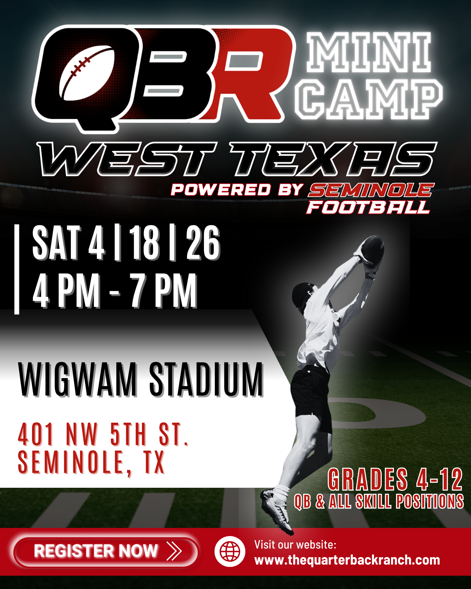| DESC: | Texas Tour Camp: QBs / Skill Positions (Receivers, Tight Ends, Running Backs, Defensive Backs) 4th - 12th Grade $200 QBs $100 Skill |